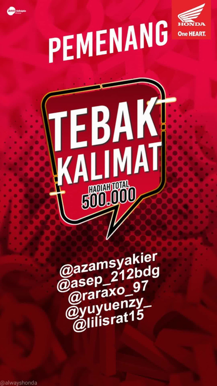 PEMENANG TEBAK KALIMAT BERSAMA ASTRA DAYA MOTORA